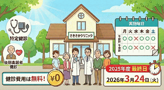・2025年度の健診最終日は2026年3月24日(火)です。